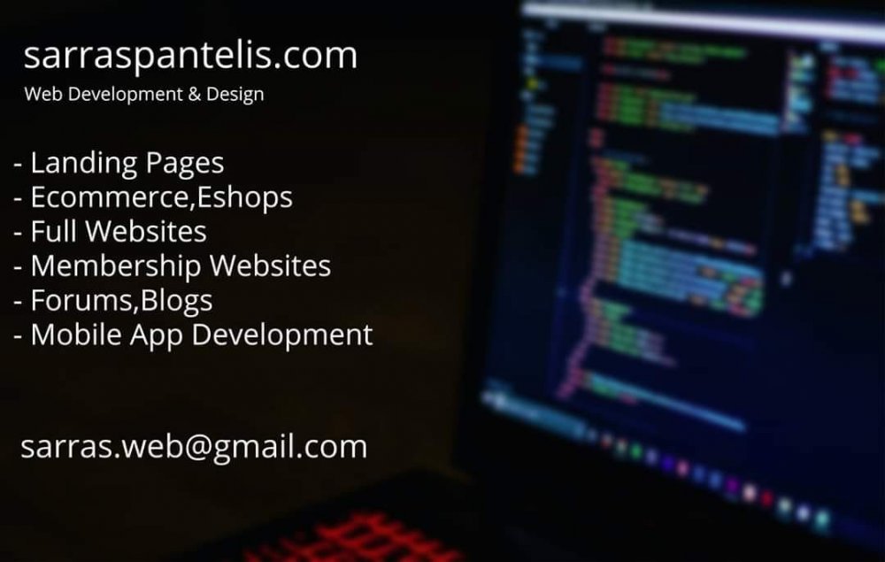 Hello everyone. I am web developer - designer working with wordpress and also laravel. I also working in creating native android applications for your website. I am willing to create any type of website or web application at low cost!! Feel free to reach me!! my portofoio: https://sarraspantelis.com Cheers