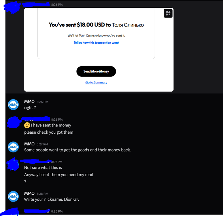 Requesting a mod to ban the user he just scammed me. Payment has been completed and relevant user blocked me on discord without completing the transaction. More details and full chat log can be provided in pms -