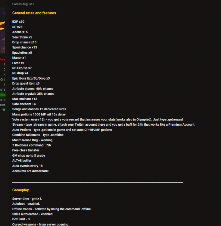 All in all, want to ask if those classic servers are popular enough at these times? I know that there are not lots of classic servers, but when i log in to check i make impression that 40% of players are phantoms. So what's your opinion is it worth it to open classic server (zaken)? For example the features (events and all other functions would be the same as in L2Zaken project - almost their files). H5 is drained, every week 2new projects minimum (so let's say there are 100 servers with 50players in each)..