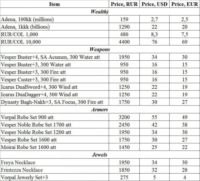 Our party party plays on various lineage free projects and before leaving for a new server we sell everything that we could accumulate in order to comfortably start on a new server. Such a moment has come now, so the following lots are offered to your attention: