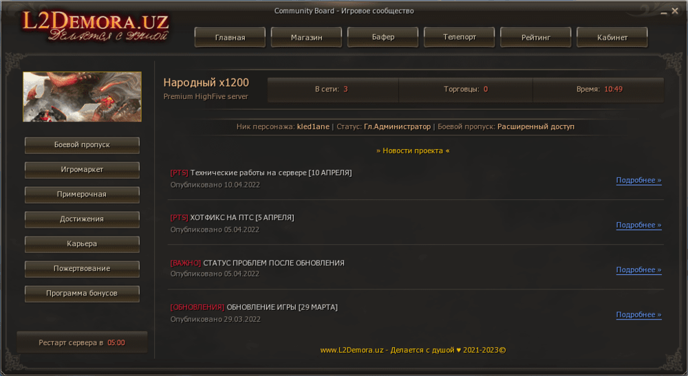 For sale ready server L2Demora.uz x1200 with sources code (Last\actual version at the moment).
