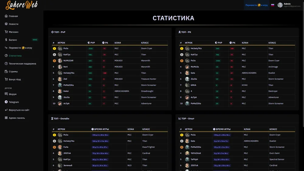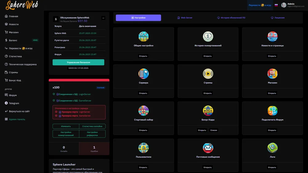 Hello guys, I’d like to introduce your audience to my original project, which has gained popularity in Europe and among the Russian-speaking community. I just never got around to posting about it here until now. At one point, I wanted to develop a launcher (game file downloader) in the browser, and that idea eventually evolved into a full-fledged CMS engine with extensive functionality. SphereWeb is a massive ecosystem for Lineage 2 JAVA servers, packed with everything a server administrator and players might need. From October 2024 to April 24, 2025, my project has been installed on 250 different domains. SphereWeb is your best choice — a modern web engine designed specifically for administrators of Lineage 2 Java game servers. It offers a rich and user-friendly interface for managing your server with ease. Player Control Panel – covers all player needs: Authorization, registration, password change, account linking and synchronization, contacting the admin via support system, teleporting a character (and sending items to warehouse) to a town, warehouse management (sending items in-game), and making server donations. Admin Control Panel – opens up new horizons, giving you access to: Extensive panel customization (more on this later) Donation history with charts News and page creation Stream management (add streams) Item shop creation Starter packs creation Bonus code generation XenForo news integration Email message settings Global activity log Traffic insights (track where your users come from) Extensions section (plugins – more on that later) Server management Auto software updates Tech support Custom translations Now, about the Control Panel settings: The standard settings are organized into several tabs: Language There are 5 available languages: Russian, English, Spanish, Portuguese, and Greek, covering 99% of translation needs. You can also set a default language for the panel. Features Toggle built-in features of the control panel: News, Shop, Balance, Statistics, Support, Balance Transfer, Bonus Code, Streams, Data Emulation. Enable/disable options to keep the panel clean and focused on what you need. Captcha Support for Google reCAPTCHA, Cloudflare Turnstile, or default hCaptcha. Old-school recommendation: use Google reCAPTCHA v2. Fake Online Boosting Basic settings for boosting the online counter. Registration Settings Configuration options for the registration process. Email Connect your panel to an SMTP server. Misc General-purpose settings and adjustments. Template Choose and preview the design template for your landing page. Logo Upload your control panel logo and favicon. Palette Customize the color scheme of your control panel interface. Menu Add links to your site’s navigation menu. Background Upload high-resolution background images for login, registration, and password recovery pages. Notifications Set up Telegram notifications for selected events. In Sphere 2, I’ve paid special attention to plugins, making it easy to add and expand functionality. By default, the panel includes several built-in extensions (plugins). Giveaway – allows you to host item giveaways for users directly on the website. Internal Forum – a built-in forum system inside the Control Panel (more details on it below). Launcher – a free solution for updating game files. It delivers unmatched speed and runs directly in the browser, allowing full design customization. Traders – (currently for Lucera2 only) displays a list of offline shops, their items, prices, and player locations directly on the website. Roulette – a fun game where users spin the wheel to win items. Item Editor – a tool for creating custom in-game items. Item Increase – tracks and displays item count by ID across the server in graph form, showing which players hold the most. Registration Statistics – a simple chart showing registration trends over time. SQL Collection – a plugin for adding or adjusting Java server builds if your current build isn’t supported or needs customization. Supported Java Server Builds The system currently supports a variety of popular Java server builds. Full list available in the admin panel. Forum Plugin In the first version of Sphere, a basic internal forum was quite popular among server admins — so in Sphere 2, it came back better than ever. Inspired by XenForo, the forum is rich in features and designed for both community and solo players: Players can create clan communities to connect and play together. Clan creators can upload clan logos and header banners, customize text color for the clan name. Clan members can post on the public clan wall or chat in a dedicated clan chat. Clan logos and banners appear across the forum for all members. For players who like to show off: Under each username, the forum can display PvP/PK stats, in-game time, and character list. Players can choose to hide this data if they prefer privacy. Admins can assign moderator roles to users for specific forum sections, ensuring proper content management and community moderation. Donations & Rewards The administrator has a wide range of reward settings for player donations — almost every suggested method has been implemented: Cumulative discount system – discounts increase as the total donation amount grows. One-time bonus – an extra reward for a specific donation. Permanent shop discounts – based on the player's total donation history. One-time item shop discounts – also based on total donations. Item-based rewards – configurable rewards delivered automatically after donation. Supported Payment Systems (Current list is available in the admin panel and may vary by region.) SphereWeb Auto-Update System Sphere is actively developed — I improve it almost daily. To ensure everyone stays updated, I’ve implemented multiple update methods: Automatic – once I push updates to GitHub, they are downloaded to Sphere clients within 5 minutes. Note: This may fail due to write permission issues,