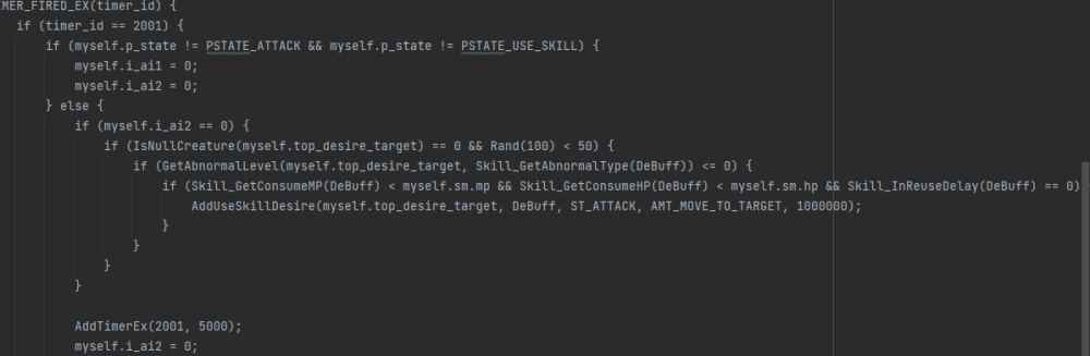 Understandable Still for someone who's never touched anything related to l2off until very recently, the ai scripts were a pain to understand when I first encountered them. The snippet I posted is pretty easy to understand for someone who's seen similar stuff before, I just wanted to point out an example to someone completely new to this. -