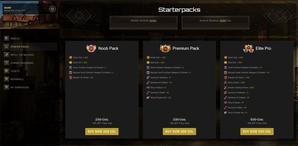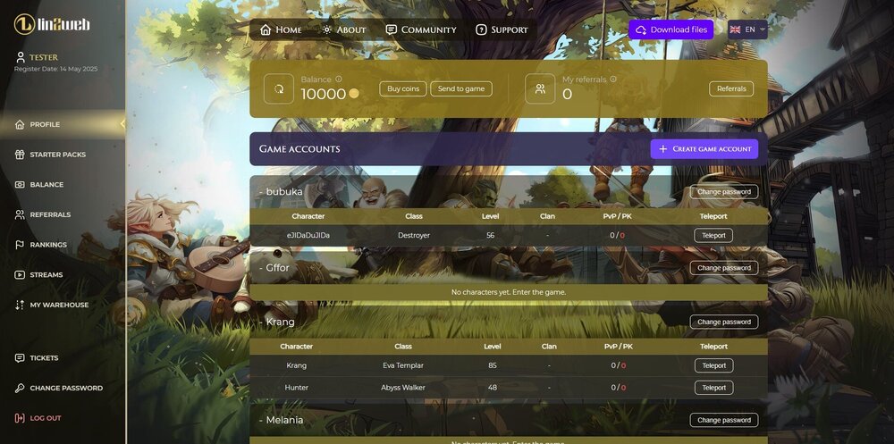 Introducing my CMS – a Personal Account System for your L2J & PTS servers! Fully Ready-to-Use Features: Master Account: Registration, password change, password recovery Game Account: Game account registration, password change, password recovery Statistics: Top PVP, Top PK, Clans, Alliances, Epic Bosses, Castles Multilingual Support: Available in English & Russian (other languages can be added) Payment Systems: Stripe, PayPal, Freekassa, Enot, PrimePayments, BetaTransfer (more coming soon) MercadoPago - for Brazil and etc..., MidTrans - for Indonesia Bonus System: Percentage-based bonus from purchases Item rewards after purchasing in-game currency Personal Account System: Login via Master Account, password management Storage System: Store donation/bonus items and transfer them to the game Ticket System: Players can submit support tickets; admins respond via the admin panel Starter Packs: You can add your own starter boxes for purchase before the server launch (configured via settings). Referral System: Create your unique link: yoursite.com/?ref=smith and share it with friends. When your referral adds funds, you'll receive 10% of the amount to your account! Master Account activation via email (can be disabled in the config). Unstuck Feature: Allows players to teleport their character to town Promo Code System: Admin can create promo codes from the admin panel (e.g. VIPBONUS777), Item ID and quantity, multiple gifts can be added, set the number of uses (0 = unlimited), start and expiration dates, with user and IP verification. Services: Transfer coins to another MA, transfer a game account to another MA, change character gender, clear karma, change nickname (PTS only). Google Captcha: can be enabled or disabled in the config. Account Synchronization: Easily migrate from other CMS platforms Custom Design Integration: We integrate your main page design (HTML, CSS, JS) for free Modern UI: Comes with a sleek Lineage 2-style account panel Easy Configuration: All settings managed via a config file for convenience Installation Assistance: Help with installing the CMS on your hosting, VPS, or VDS Check out all CMS features at: lin2web.com Demo site Supported Servers: L2J: Lucera2, L2J-Scripts, aCis, L2J-Eternity, L2JMobius, L2JFrozen, L2JSunrise, L2JHellas, PWSoft, Fandc, L2J Orion, and others PTS: Vaganth, Depmax64 (AdvExt), MyExt64 Price: $220 I’m available on Telegram & Discord – always ready to assist! Telegram Discord