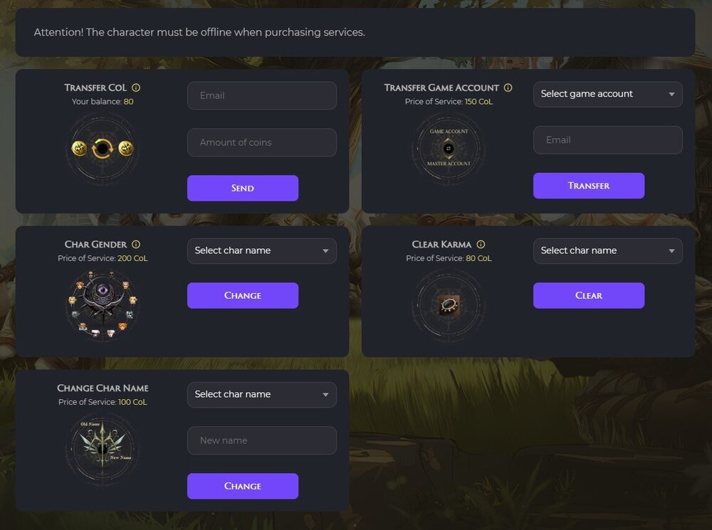 New Services Added: Transfer coins to another MA Transfer game account to another MA Change character gender Clear karma Change nickname (PTS only) New Payment Methods Supported: MercadoPago (Brazil) CoinPayments (Cryptocurrency) MidTrans (Indonesian Rupiah) -
