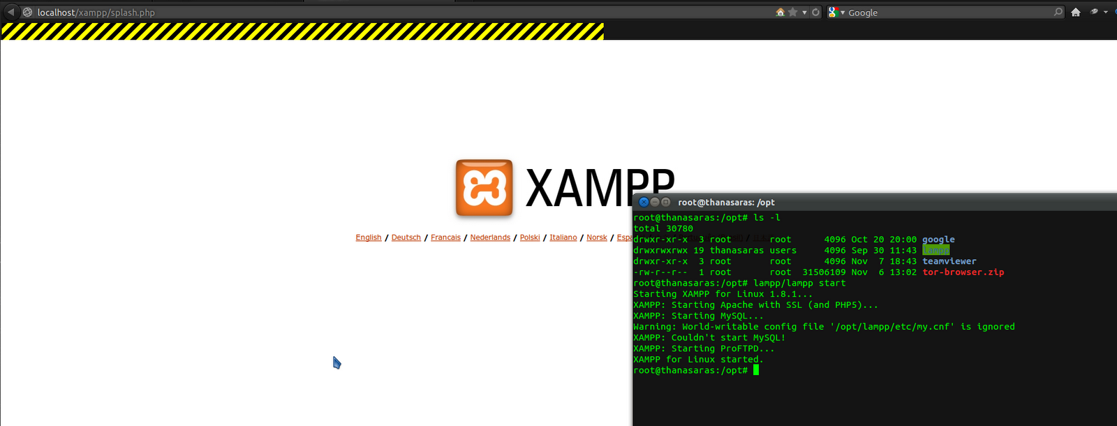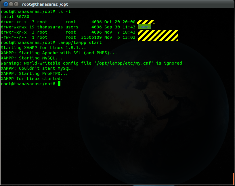 Μετά(αφού πάμε στην διαδρομή opt) γράφουμε "lampp/lampp start"