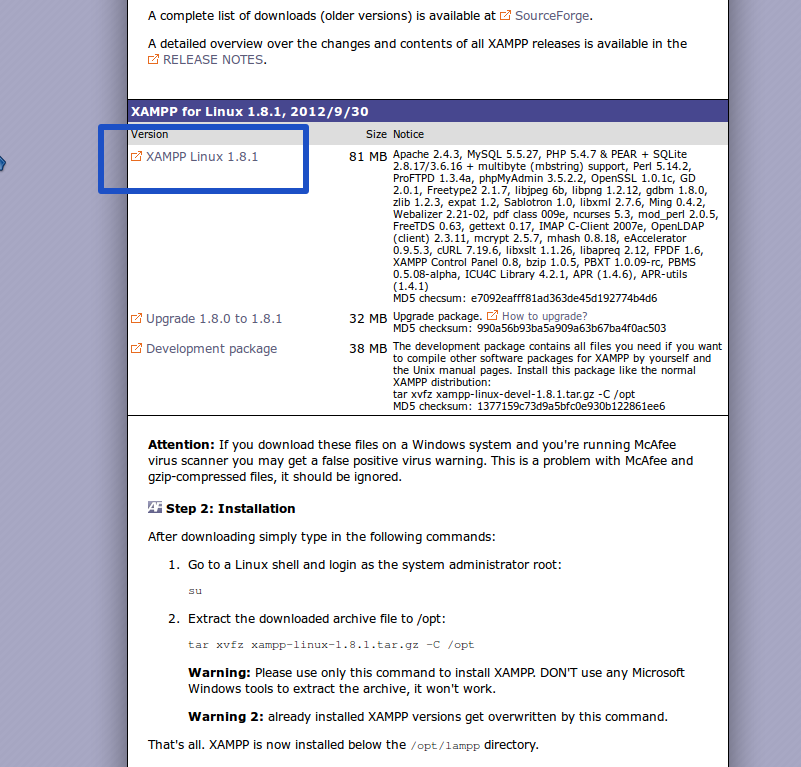 Τα βασικά τα εξηγήσαμε στο πρώτο μέρος, τι είναι το XAMPP δηλαδή, και τι κάνει. Οπότε θα προχωρήσουμε κατευθείαν στην εγκατάσταση. Θα πάτε σε αυτή τη σελίδα και θα κατεβάσετε το XAMPP για Linux σε συμπιεσμένη μορφή(tar.gz).