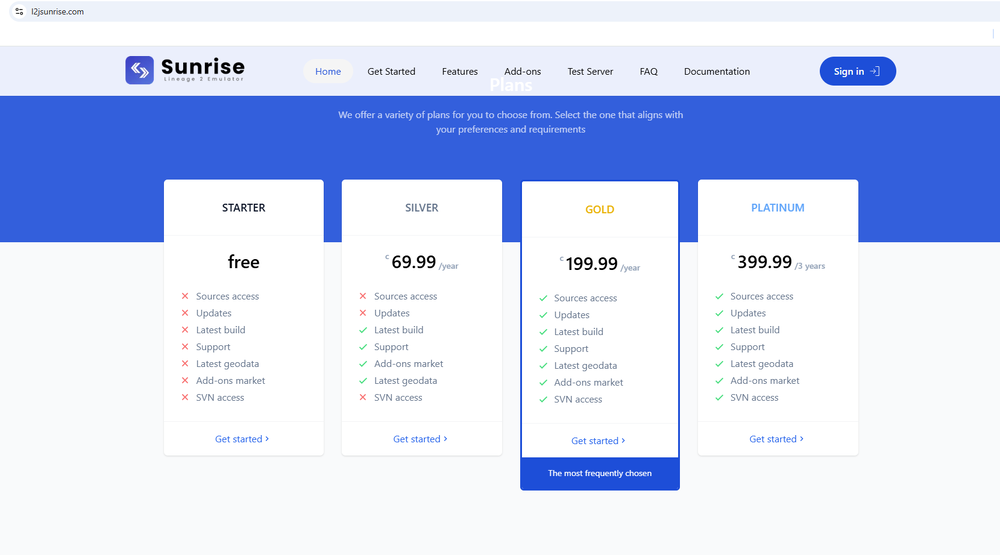 Please be sure that you obtained sunrise files from the official provider. Contact us only via our in-built contact form, facebook or through skype l2jsunrise. Fake sunrise file's may be offered on the marketplace, for lower prices, but there might include backdoors, you will not have lifetime sunrise support, and last but not least if we found out that you are using a non registered SVN, account will be deleted and you will lose everything you paid for. In case you found a re-seller of sunrise please report it at l2jsunrise@gmail.com and benefit from it.