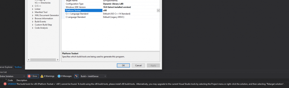 Have you tried building Emca's H5 extender? I'm having trouble. I can't find a v80 platform toolset that works, I've been trying for a while now.