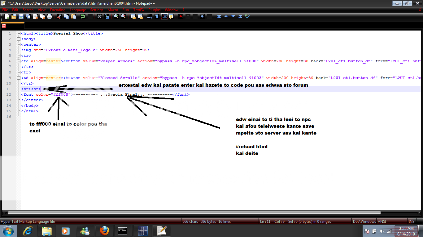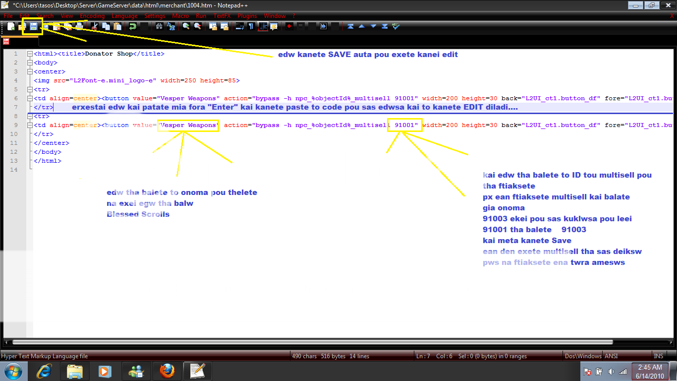 afou broume tin id pame server/gameserver/data/html ctrl + f tin id tou npc